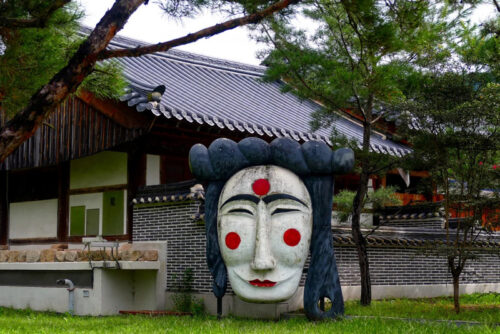 Điểm nhấn độc đáo nhất ở Hahoe chính là múa mặt nạ Hahoe (Hahoe Byeolsingut Talnori), loại hình nghệ thuật dân gian có từ thế kỷ 12. Với mặt nạ gỗ thủ công đặc trưng, từng vở diễn kể lại câu chuyện dân gian, châm biếm xã hội phong kiến, mang tính hài hước mà sâu sắc. Nếu bạn may mắn đến làng vào mùa lễ hội, bạn sẽ được thưởng thức màn trình diễn này ngay tại sân làng, dưới bóng cây cổ thụ. Đây là một trải nghiệm hiếm có mà bạn có thể được hòa mình vào khi đi du lịch Hàn Quốc đấy!