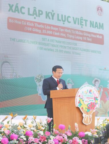 Hôm nay, tại Vườn hoa Đà Lạt, chúng ta cùng vui mừng tham dự sự kiện thiết kế và trưng bày bó hoa lớn nhất Việt Nam, một hoạt động độc đáo, sáng tạo và mang đậm bản sắc địa phương, hướng đến xác lập Kỷ lục Việt Nam. Việc tạo dựng Bó hoa tươi Đà Lạt xác lập Kỷ lục Việt Nam lần này không chỉ góp phần hình thành một sản phẩm du lịch mới phục vụ Nhân dân và du khách, mà còn là dịp để quảng bá, tôn vinh hoa và nghề trồng hoa – niềm tự hào của mảnh đất và con người Đà Lạt – Lâm Đồng.